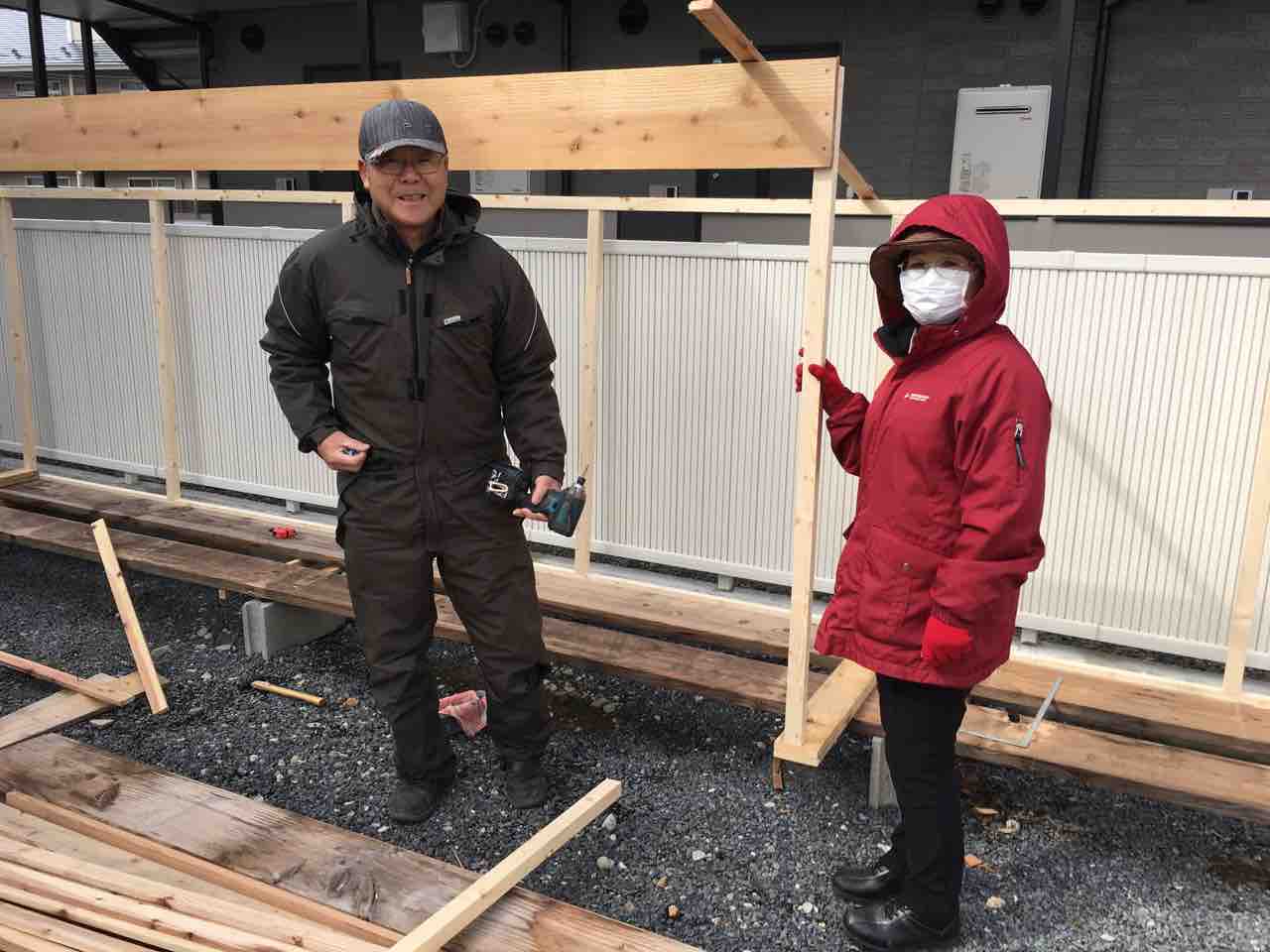 PS:会長と言えば、今日も風の中、珍しく夫婦で菊盆栽用の棚作りに奮戦中でした 笑。。。